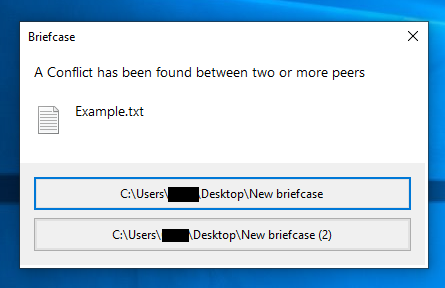 The ReBriefcase conflict detection window differs greatly compared to the Windows briefcase conflict detection window. The goal was to make it easier to use quickly, and to make it more intuitive for causual users.